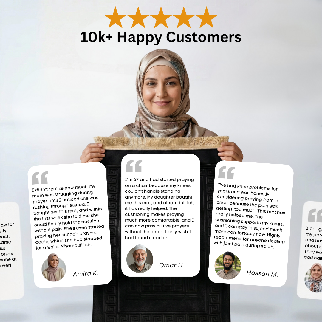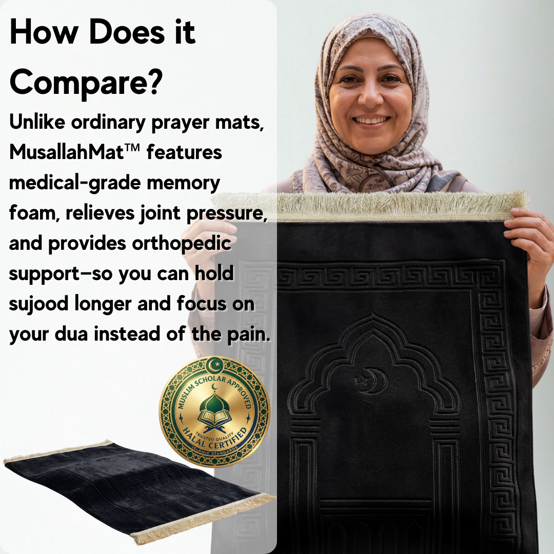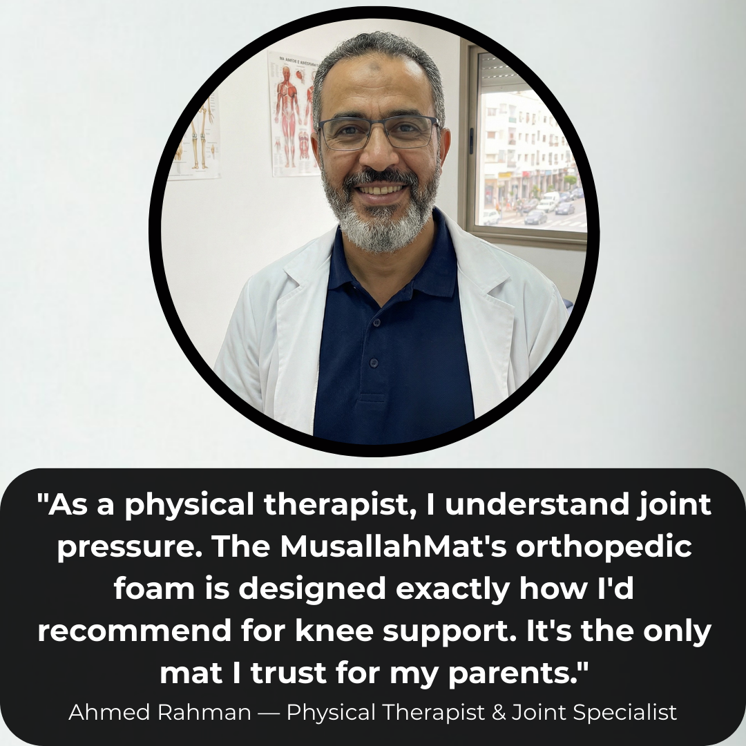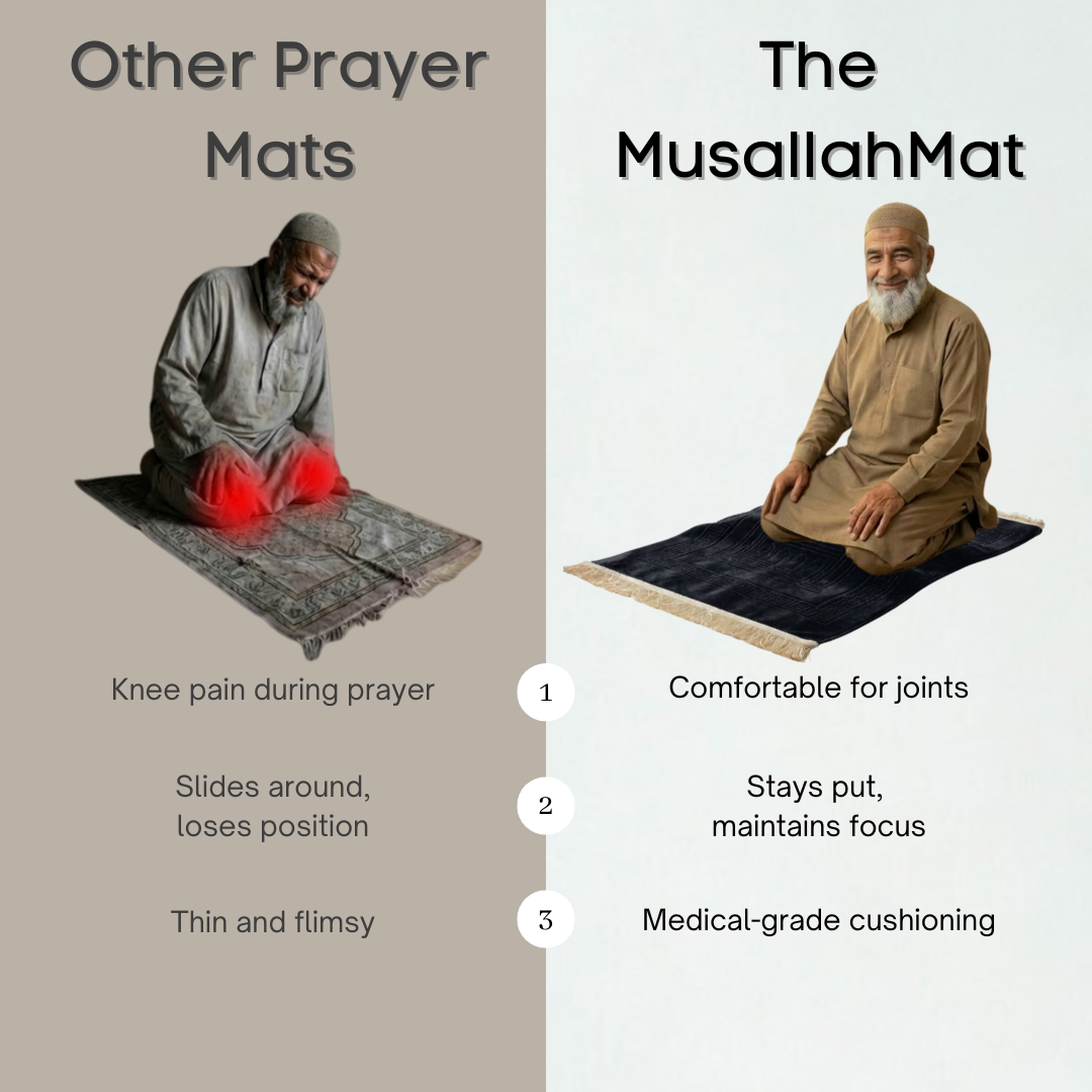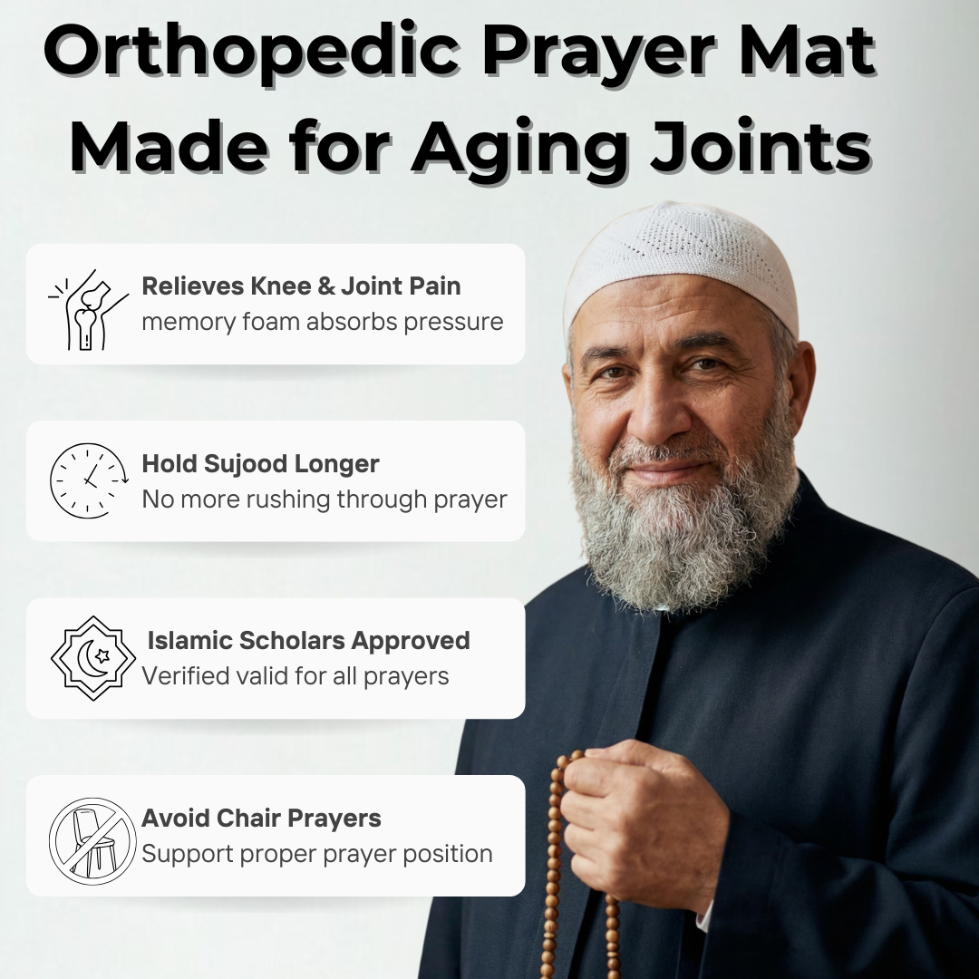 The MusallahMat is designed for Muslims who deserve pain-free prayer—especially elders, those with joint issues, or anyone who wants to extend their sujood without discomfort.